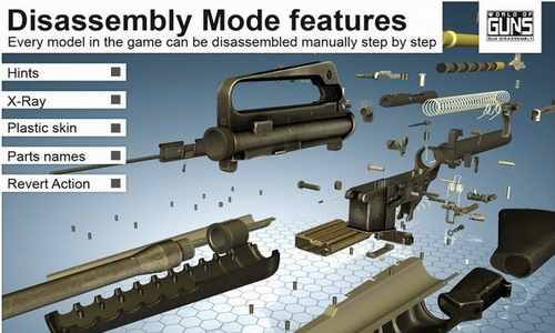 游戏采用全新的3D引擎打造,真实的模拟了枪械里的所有零部件,玩家可以在游戏中任意的拆解各种枪械。
