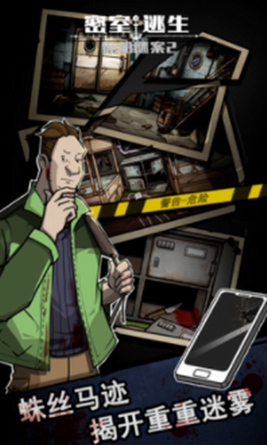 1、游戏中以2D还原真实的凶案现场,通过不断的点击手机图片中的各种线索不断的拼凑事实真相。