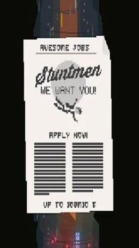 玩家在游戏中操控一名叫做素图尔特的特技演员,要从一个东京主题的电影中跳下来,并保证自己不会死。下落途中会遇上各种障碍,一旦撞上,斯图尔特就会变得粉身碎骨,只留下一滩红色的血迹。玩家存活的时间越长,所获得的现金也就越多,玩家可以增加你的下降速度获得更多的现金,但是相对的人物也就会更容易死亡。