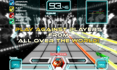 操作方面,游戏采用了虚拟按键的方式。屏幕左右的两个箭头控制着左右的转向,左下角的boost是加速,右下角的Jump控制跳跃,两者都有使用冷却时间。