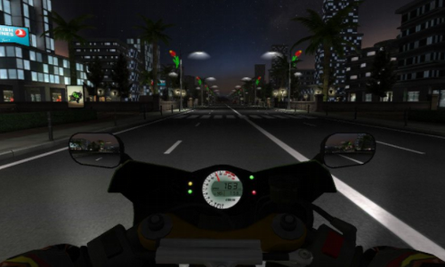 通过按键或重力感应操控摩托车。
