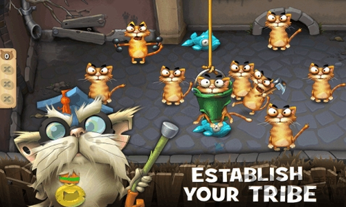 侵略其他家族来夺取他们的鱼和符咒,然后回家让猫咪们歇息并享用刚刚抢来的鱼。升级你的猫咪小兵来强化牠们的个别能力,搜集并打造道具来强化家族力量,不用多久你就能称霸群雄;