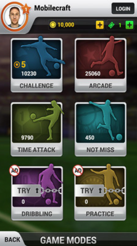 6种不同的单人游戏模式:挑战、街道、不错过、计时、带球、练习;