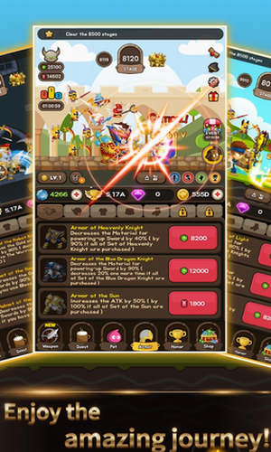 2.加入类丰富的养成系统与收集玩法,可以收集材料,制作装备、强化骑士等;