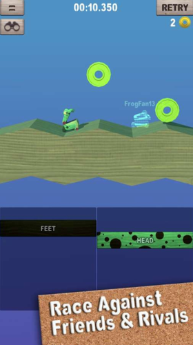 游戏控制有点难度,必须要小心翼翼的控制操控杆,寻找到合适的角度和力度让青蛙跳出去;