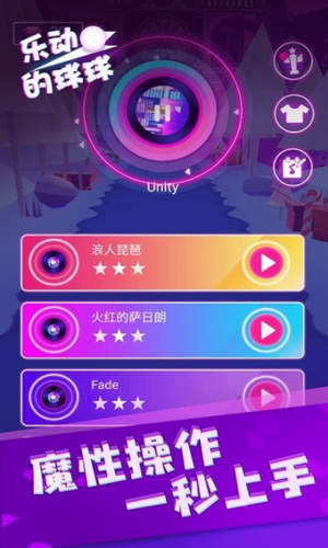 乐动的球球游戏下载是一种很神奇的音乐节奏类挑战游戏,可以跟着音乐节奏跳动闯关冒险,不仅能挑战你的反应能力和手速,还能欣赏到许多美妙的曲调,游戏中有很多经典的曲目,在这里你可以选择多种有意思的音乐来进行闯关!游戏的玩法十分多样化,你需要从简到繁慢慢尝试各种关卡,游戏非常之具有趣味性,玩家需要跟着音乐的节奏让小球舞动起来,从一个节奏块顺利的跳到另一个节奏块,在弹跳间完成音乐的演奏
