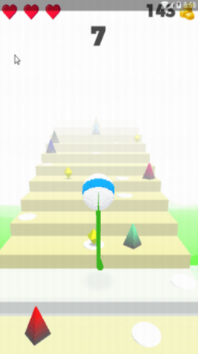 楼梯上有许多阻碍物,需要玩家控制小球进行躲开,需要玩家具有快速的反应能力。