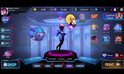 1、召集英雄闯荡赛博朋友城市,在黑暗里滋生的怪物,将被英雄战斗消灭,每个英雄角色具有专属技能。