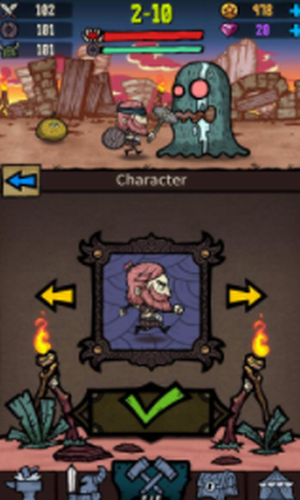 1、 通过手工绘画制作的魅力无穷的游戏画面。简单的操作- 通过合成两个装备来获得更好的装备。