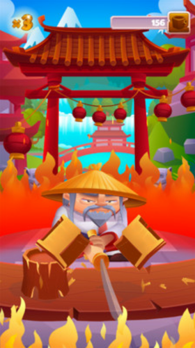 看准那些被传送过来的木头,点击你的屏幕挥下你的砍刀将那些木头全都劈成两半,感受游戏乐趣;