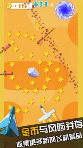 暴走纸飞机最新版是一款极致趣味性的冒险闯关类游戏,这款游戏采用重力感应的控制方式,精准的重力感应,躲避,采用不同的控制重力方式来操控,十分考验玩家的反应和操作,游戏中玩家需要驾驶自己的飞机闯关冒险,躲避关卡中各种物体的袭击,收集星星和加速道具并使用星星来解锁更多的飞机,游戏里精准的重力感应,躲避、加速、超越、让玩家感受体感游戏急速飞机的操控乐趣。