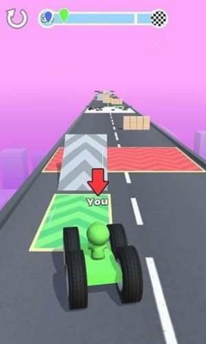 1、游戏赛道上有很多加速的道具,驾驶车辆前往进行加速。