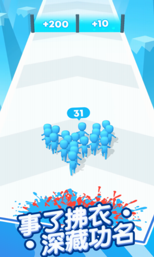2.突破障碍,击败路上的所有人,收集硬币并升级。