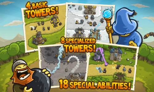 王国保卫战第一部就,经典的策略塔防,兵营塔、魔法塔、大炮塔、弓箭塔等不同能力的防御塔,玩家需要搭配出你的战斗队伍,根据敌人的实力布置,使用不同策略技巧,这样你才能更轻松的完成挑战。