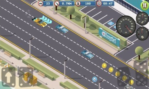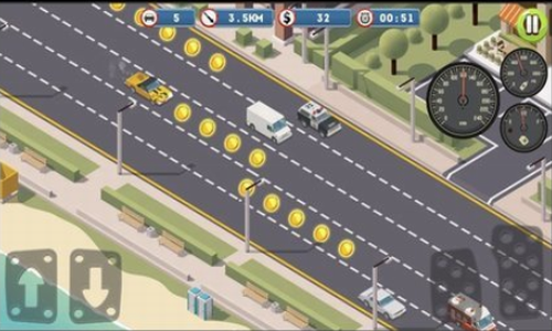 1、在游戏中,汽车在自己的车道上直线行驶,玩家可以通过变换车道来变换车道;