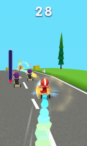 3、使用各种氮气加速和道具来增加自己的速度,并且延缓对手们。