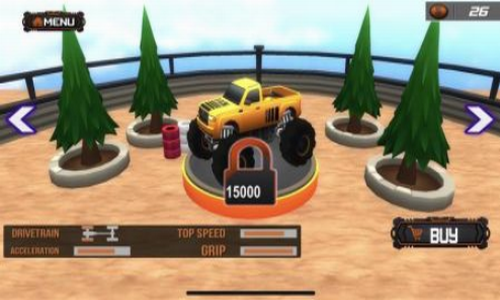 3、这款汽车游戏有趣的模式选择会给你不一样的卡车赛车体验,参与比赛,升级和替换你的怪物卡车;