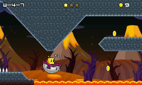 利用跳跃来跨越各种障碍物,或者踩踏各种怪物(蝙蝠不能踩),最终到达每关的目的地。