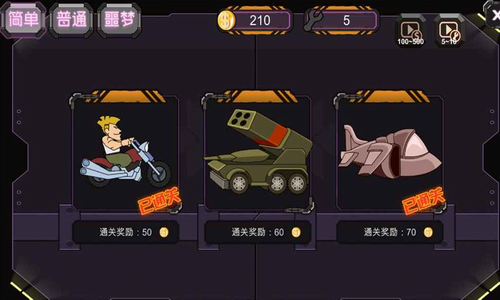 完成任务获得金币在商城中,自由购买武器和战车进行组合。