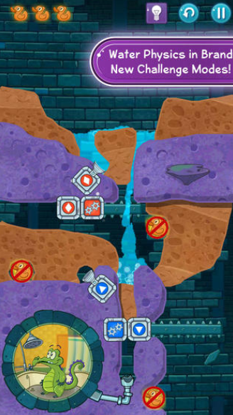游戏引入“挑战模式”,对关卡难度产生颠覆性的变革,会给您带来更多的乐趣!比如挑战模式中的“上下颠倒”,所有物质的性质也是上下颠倒的,例如水往上流。以及“转换鸭子”挑战模式,此关的鸭子会变成另外一种鸭子。更多挑战模式期待您的挖掘!