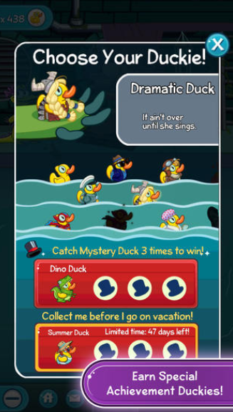 完成各类成就并赢取特殊主题小鸭,例如角斗鸭、宇航鸭、草裙鸭等等!趣味小鸭子会丰富您的游戏生活!