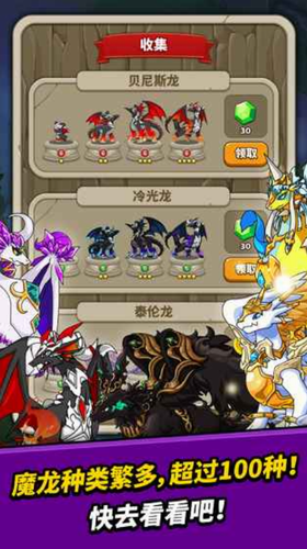 游戏中设置了海量的魔龙角色,玩家可以自由收集,打造最强的阵容,征服世界;