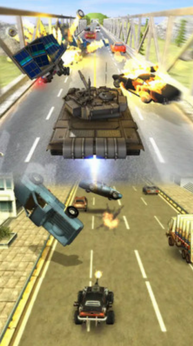 使用微型汽车清理道路上的车辆,或使用导弹将前方的汽车送上天空。