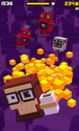 这是一款弹幕射击游戏,角色都是乐高式的方块人,五颜六色,看起来还是蛮可爱的。