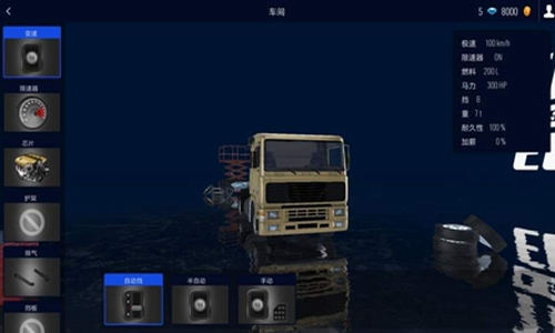 3.到达城镇中可以选择更换轮胎或是加油,当你足够有钱给自己的卡车配件升级