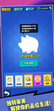 我炼金贼牛破解版无限金币版,也就是我炼金贼牛免广告版,游戏移除了全部的广告,清爽的游戏环境让你尽情的玩耍。玩家需要从各种垃圾废品中提炼黄金。荣华富贵都在这里了,感受畅快的炼金子的过程。你首先需要收集各种废弃物品,什么手机、电风扇、冰箱、电视机,都可以。一个尊重现实的游戏,然后玩家再使用各种工具将它们压缩融化,最后提炼出黄金。再用你的黄金制作各种工艺品,完成客户的订单。这是一个非常解压的过程,你可以使用锤子和液压机压扁这些垃圾。