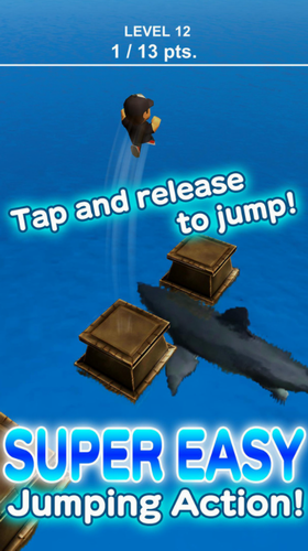 在跳跃过程中要小心从海中跃起的鲨鱼,助你能够安全逃生!
