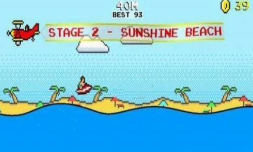 游戏采用复古像素图像,享受冲浪的乐趣。
