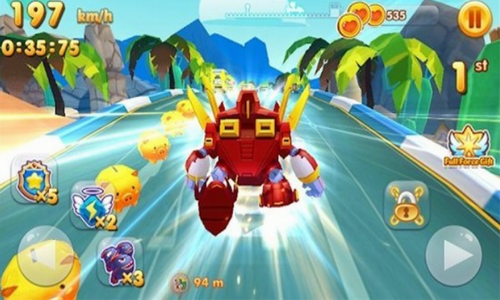 2、玩家可以在游戏中可以在比赛中在卡丁车和变形金刚之间切换,这将帮助你清除前面的障碍。