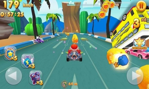 3、各种道具的使用可以让你短时间提升自己的速度或者对别的选手造成干扰,有助于你获得最后的冠军;