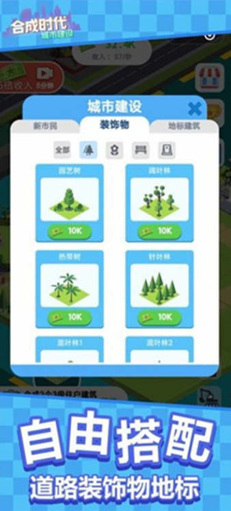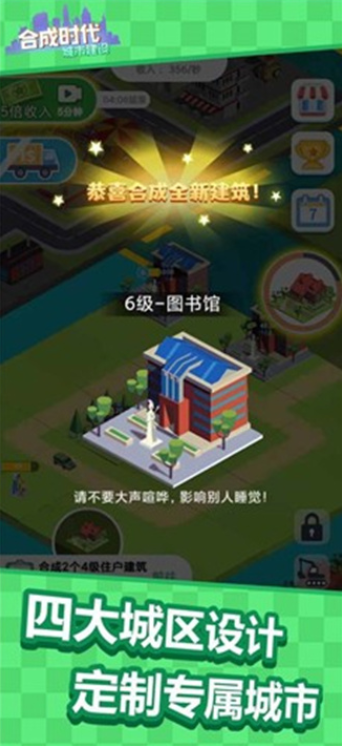 游戏中你可以不断的合成,让你的建筑升级的更加豪华,这样你可以获得更多的收益,让你的城市发展的更好。