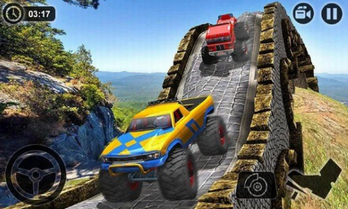 1、用你的怪物卡车跳上坡道。控制你的怪物卡车用现实控制爬山。