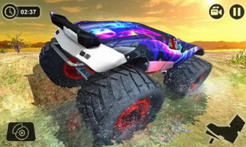 2、像怪物卡车自由式游戏中的亲拉力司机一样在块状道路上驾驶怪物卡车。