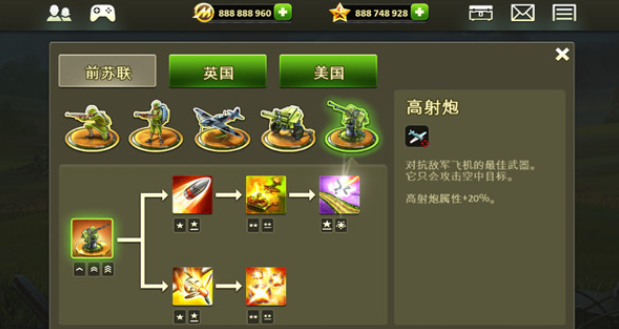 可解锁的升级树,每个单位有多项改进