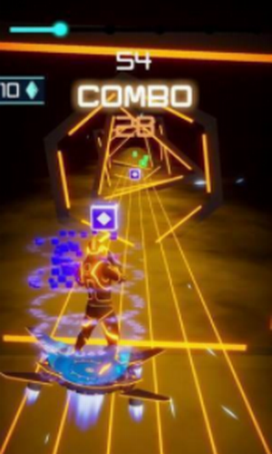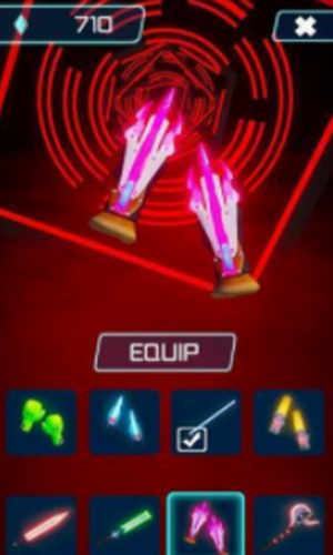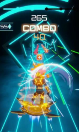 3、通过音乐节奏来对迎面而来的方块进行劈砍消除,有些障碍物需要躲避;