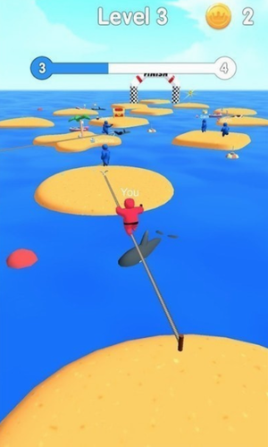钩绳枪赛跑破解版是一款很容易上瘾的多人竞技跑酷闯关游戏,有着非常简洁的游戏画面,我们体验起来也是十分不错的,总之还会有着很多意想不到的惊喜,在一个独特的赛道上开始自己的比赛感受游戏中的更多乐趣,提升自己的技术操作让自己顺利通过考验感受更多乐趣,更多有趣的游戏内容等待玩家来体验,率先到达终点就是最终的胜利者,在这里玩家们需要做的就是用钩绳枪构造绳索线路,很容易上瘾的多人竞技跑酷闯关游戏