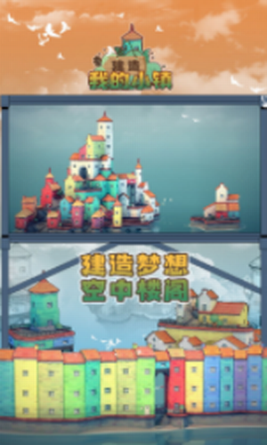 2、色彩丰富的小镇,在屏幕上自动滑动点击,生成不同类型的房屋。