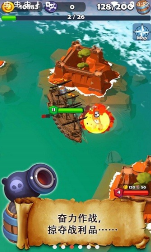 成为海盗以最强大的海岛为目标努力,获得资源探索周边的海岛。