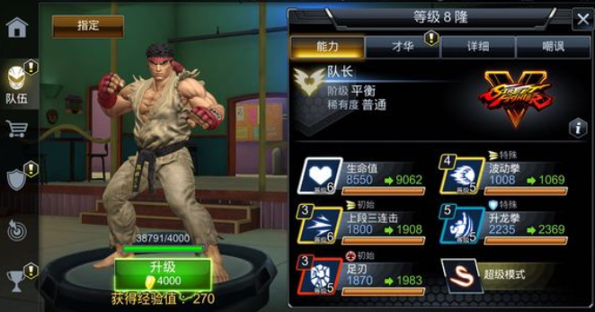 以战斗与任务中赢得的奇奥碎片升级你的最强斗士,以增加你的连胜纪录与战斗数据。