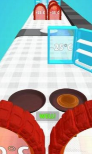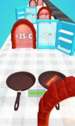 来吧控制你的平底锅来一场精彩的跑酷比赛,向终点冲刺,并且要选择合适的温度通道,给平底锅里的煎饼、披萨、鸡蛋等食物加热,但是要注意,温度不能过高,如果烤焦了则一分钱的奖励都拿不到,同样也不能过低,所以要根据不同食材需要的温度选择正确的温控通道,并送达终点的客人盘子里。