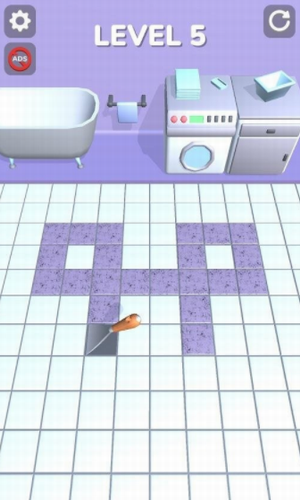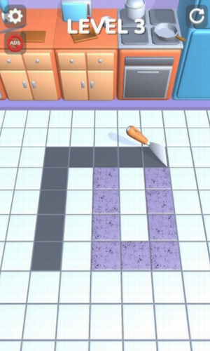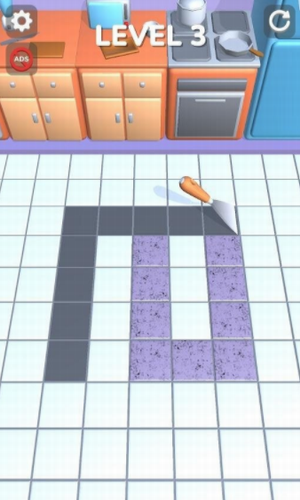 1、趣味减压的游戏玩法,操控铲刀,铲除不同颜色瓷砖。