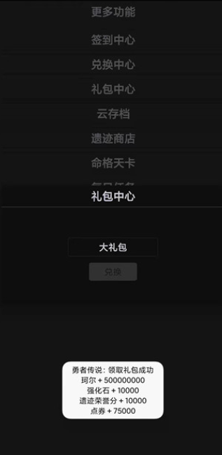 勇者传说无敌版会让你沉浸游戏中。玩家进入游戏后可以通过在更多设置中输入“大礼包”兑换的形式,获得无限钻石和免费购买游戏中所有道具的权限,同时文字的玩法非常的有趣。
