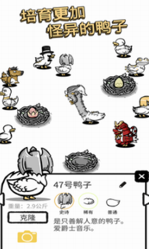 操作简单,画风可爱。不过只有内购了神灯存放鸭子才能开始自己控制鸭子配种。