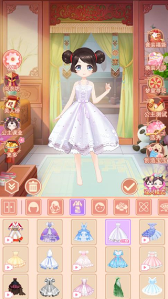 1、游戏中为心灵手巧的玩家,你可以帮助芊芊公主搭配,古风,宫廷,萝莉装每天都不重样。