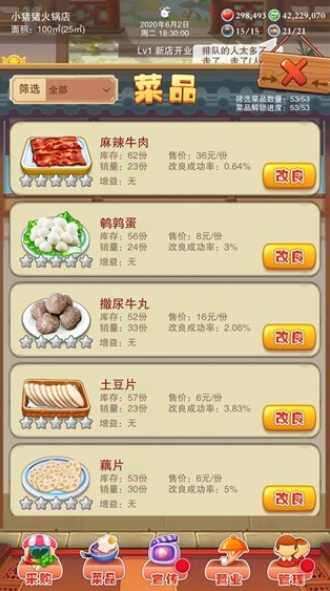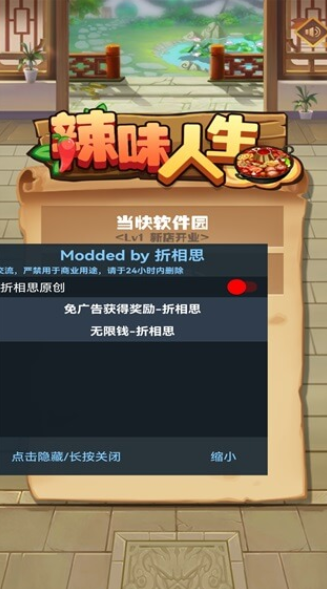 辣味人生无广告版菜品的设计是比较不错的,就直接放上了类似于实物图片的这样一个感觉,在一定程度上提高了游戏的真实性和代入感,同时游戏本身引入了像时间制以及广告等设定,游戏本身是一日一结算,玩家每天都要面临食材的采购以及新菜品的研发,然后同时还要考虑自己店面的大小啊,整体的一个客流量要花更多的资金,在研究食谱上还是花更多的资金在宣传上等等各方面的问题,并且还适当的加入了特殊事件的设定,所以在整体体验上来讲,给人带来的趣味还是比较多的。