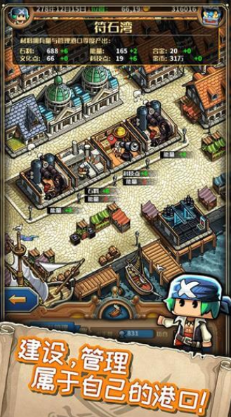 小小航海士外传无限资源版需要在港口买进货物,运送到另一个港口卖出——这种赚取中间差价的贸易方式要求玩家对整个地图布局熟记于心。在小小航海士外传无限资源版中,每个港口取消了普通商品,只留下了特产品,并会显示在地图上。如果想要买什么只要打开地图观看即可,也为跑商路线摸索提供了便利。最大的变化是增加了捕鱼系统、商船打劫等内容,还可以收编和建设港口,为玩家提供了另一种的收益获取方法。